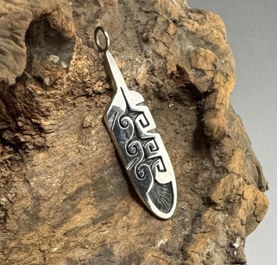 Hopi Harlan Joseph Feather Motif Overlay Pendant