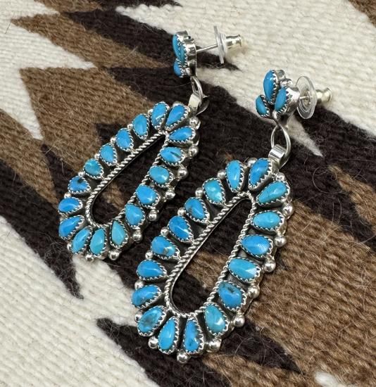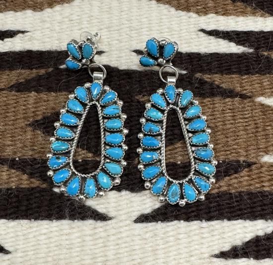 Navajo Erick Wilson Kingman Turquoise Cluster Earrings